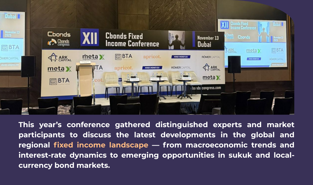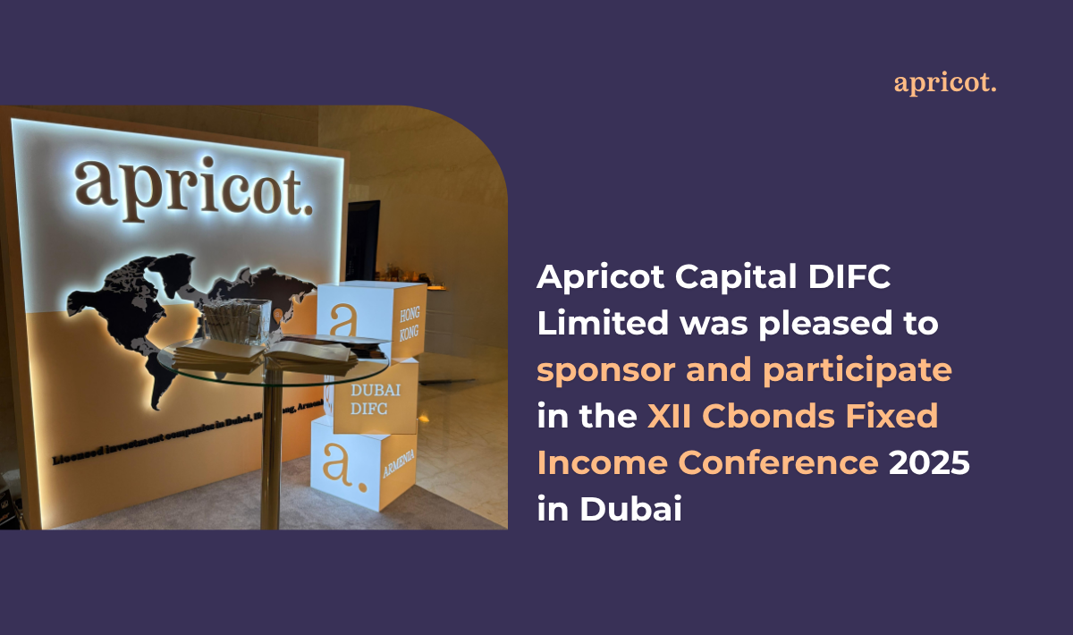 Apricot Capital DIFC Limited was pleased to sponsor and participate in the XII Cbonds Fixed Income Conference 2025, held in Dubai. The conference brought together distinguished experts and professionals from across the global and regional fixed income markets to discuss the latest trends, developments, and investment opportunities shaping the sector.